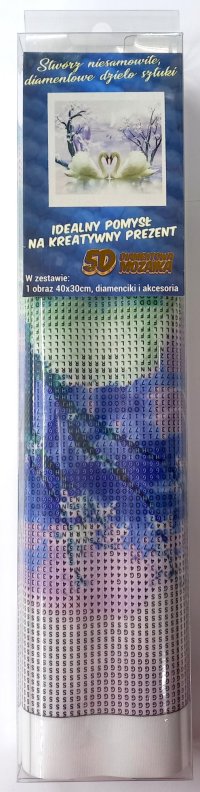 Balenie obsahuje: plátno s predtlačeným obrázkom, pero na aplikáciu kamienkov, misku na vysypanie kamienkov, vosk na nalepenie, sadu farebných kamienkov Diamantové maľovanie - postup: Horná strana plátna je potiahnutá lepidlom a prekrytá priehľadnou fóliou. Fóliu dávajte dole postupne po častiach tak, ako budete aplikovať kamienky. Pri sňatí celej fólie naraz sa môže lepiaca vrstva znečistiť a kamienky by nemuseli tak dobre držať. Plátno obsahuje znaky, ktoré sú uvedené v priloženej legende a odkazujú na príslušné vrecko s kamienkami označené číslom. Kamienky z daného vrecka vysypte do misky. Do hrotu pera naberte vosk, vďaka ktorému sa kamienky ľahko prichytia na pero. Kamienky perom nanášajte na obrázok. Po nalepení danej farby kamienky nasypte späť do vrecka a pokračujte s ďalšou farbou.