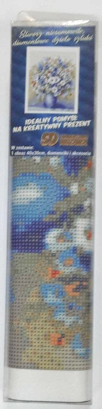 Balenie obsahuje: plátno s predtlačeným obrázkom, pero na aplikáciu kamienkov, misku na vysypanie kamienkov, vosk na nalepenie, sadu farebných kamienkov Diamantové maľovanie - postup: Horná strana plátna je potiahnutá lepidlom a prekrytá priehľadnou fóliou. Fóliu dávajte dole postupne po častiach tak, ako budete aplikovať kamienky. Pri sňatí celej fólie naraz sa môže lepiaca vrstva znečistiť a kamienky by nemuseli tak dobre držať. Plátno obsahuje znaky, ktoré sú uvedené v priloženej legende a odkazujú na príslušné vrecko s kamienkami označené číslom. Kamienky z daného vrecka vysypte do misky. Do hrotu pera naberte vosk, vďaka ktorému sa kamienky ľahko prichytia na pero. Kamienky perom nanášajte na obrázok. Po nalepení danej farby kamienky nasypte späť do vrecka a pokračujte s ďalšou farbou.