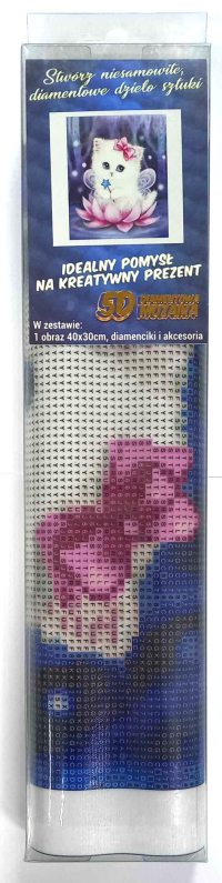 Balenie obsahuje: plátno s predtlačeným obrázkom, pero na aplikáciu kamienkov, misku na vysypanie kamienkov, vosk na nalepenie, sadu farebných kamienkov Diamantové maľovanie - postup: Horná strana plátna je potiahnutá lepidlom a prekrytá priehľadnou fóliou. Fóliu dávajte dole postupne po častiach tak, ako budete aplikovať kamienky. Pri sňatí celej fólie naraz sa môže lepiaca vrstva znečistiť a kamienky by nemuseli tak dobre držať. Plátno obsahuje znaky, ktoré sú uvedené v priloženej legende a odkazujú na príslušné vrecko s kamienkami označené číslom. Kamienky z daného vrecka vysypte do misky. Do hrotu pera naberte vosk, vďaka ktorému sa kamienky ľahko prichytia na pero. Kamienky perom nanášajte na obrázok. Po nalepení danej farby kamienky nasypte späť do vrecka a pokračujte s ďalšou farbou.