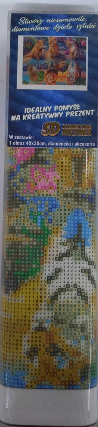 Balenie obsahuje: plátno s predtlačeným obrázkom, pero na aplikáciu kamienkov, misku na vysypanie kamienkov, vosk na nalepenie, sadu farebných kamienkov Diamantové maľovanie - postup: Horná strana plátna je potiahnutá lepidlom a prekrytá priehľadnou fóliou. Fóliu dávajte dole postupne po častiach tak, ako budete aplikovať kamienky. Pri sňatí celej fólie naraz sa môže lepiaca vrstva znečistiť a kamienky by nemuseli tak dobre držať. Plátno obsahuje znaky, ktoré sú uvedené v priloženej legende a odkazujú na príslušné vrecko s kamienkami označené číslom. Kamienky z daného vrecka vysypte do misky. Do hrotu pera naberte vosk, vďaka ktorému sa kamienky ľahko prichytia na pero. Kamienky perom nanášajte na obrázok. Po nalepení danej farby kamienky nasypte späť do vrecka a pokračujte s ďalšou farbou.