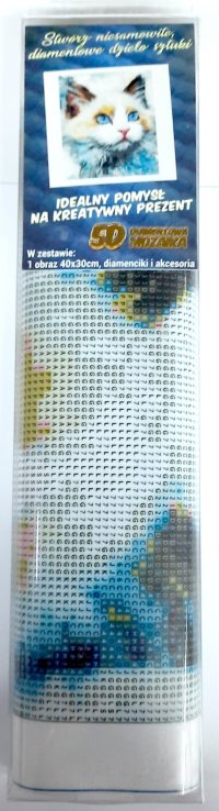 Balenie obsahuje: plátno s predtlačeným obrázkom, pero na aplikáciu kamienkov, misku na vysypanie kamienkov, vosk na nalepenie, sadu farebných kamienkov Diamantové maľovanie - postup: Horná strana plátna je potiahnutá lepidlom a prekrytá priehľadnou fóliou. Fóliu dávajte dole postupne po častiach tak, ako budete aplikovať kamienky. Pri sňatí celej fólie naraz sa môže lepiaca vrstva znečistiť a kamienky by nemuseli tak dobre držať. Plátno obsahuje znaky, ktoré sú uvedené v priloženej legende a odkazujú na príslušné vrecko s kamienkami označené číslom. Kamienky z daného vrecka vysypte do misky. Do hrotu pera naberte vosk, vďaka ktorému sa kamienky ľahko prichytia na pero. Kamienky perom nanášajte na obrázok. Po nalepení danej farby kamienky nasypte späť do vrecka a pokračujte s ďalšou farbou.