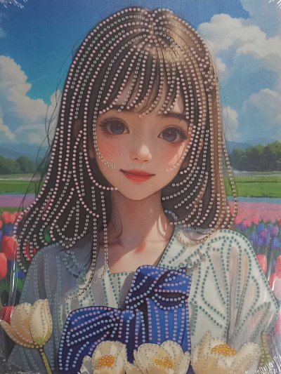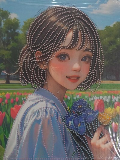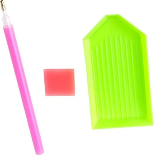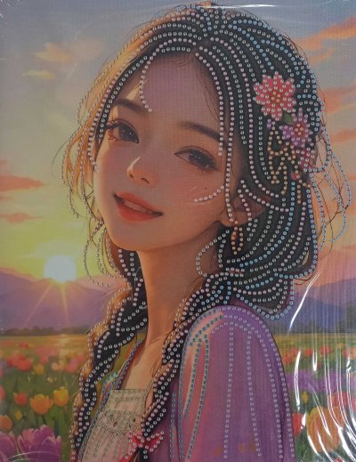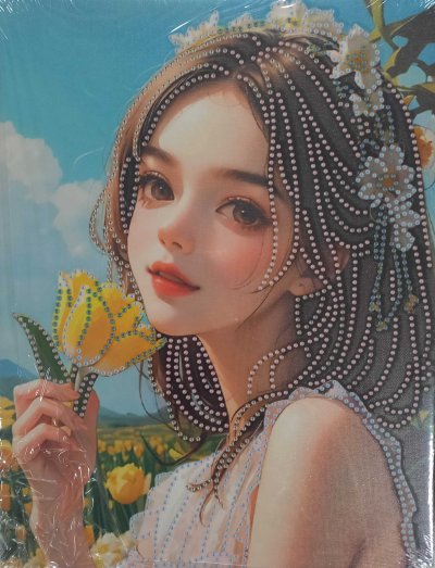 Balenie obsahuje: 1 ks plátna s predtlačeným obrázkom, pero na aplikáciu kamienkov, misku na vysypanie kamienkov, vosk na nalepenie, sadu farebných kamienkov Poznámka: Balenie obsahuje jedno plátno s predtlačeným obrázkom Variantu obrázku dodávame podľa skladových zásob. fóliou. Fóliu dávajte dole postupne po častiach tak, ako budete aplikovať kamienky. misky. Do hrotu pera naberte vosk, vďaka ktorému sa kamienky ľahko prichytia na pero. Kamienky perom nanášajte na obrázok.