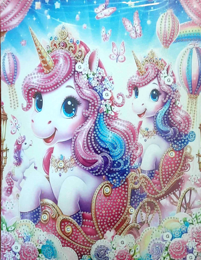 Balenie obsahuje: plátno s predtlačeným obrázkom a pevným rámom, pero na aplikáciu kamienkov, misku na vysypanie kamienkov, vosk na nalepenie, sadu farebných kamienkov Diamantové maľovanie - postup: Horná strana plátna je potiahnutá lepidlom a prekrytá priehľadnou fóliou. Fóliu dávajte dole postupne po častiach tak, ako budete aplikovať kamienky. Pri sňatí celej fólie naraz sa môže lepiaca vrstva znečistiť a kamienky by nemuseli tak dobre držať. Plátno obsahuje znaky, ktoré sú uvedené v priloženej legende a odkazujú na príslušné vrecko s kamienkami označené číslom. Kamienky z daného vrecka vysypte do misky. Do hrotu pera naberte vosk, vďaka ktorému sa kamienky ľahko prichytia na pero. Kamienky perom nanášajte na obrázok. Po nalepení danej farby kamienky nasypte späť do vrecka a pokračujte s ďalšou farbou.