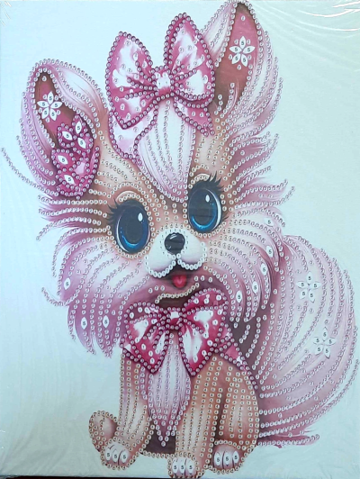 Balenie obsahuje: plátno s predtlačeným obrázkom a pevným rámom, pero na aplikáciu kamienkov, misku na vysypanie kamienkov, vosk na nalepenie, sadu farebných kamienkov Diamantové maľovanie - postup: Horná strana plátna je potiahnutá lepidlom a prekrytá priehľadnou fóliou. Fóliu dávajte dole postupne po častiach tak, ako budete aplikovať kamienky. Pri sňatí celej fólie naraz sa môže lepiaca vrstva znečistiť a kamienky by nemuseli tak dobre držať. Plátno obsahuje znaky, ktoré sú uvedené v priloženej legende a odkazujú na príslušné vrecko s kamienkami označené číslom. Kamienky z daného vrecka vysypte do misky. Do hrotu pera naberte vosk, vďaka ktorému sa kamienky ľahko prichytia na pero. Kamienky perom nanášajte na obrázok. Po nalepení danej farby kamienky nasypte späť do vrecka a pokračujte s ďalšou farbou.