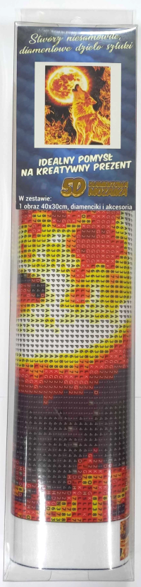 Balenie obsahuje: plátno s predtlačeným obrázkom, pero na aplikáciu kamienkov, misku na vysypanie kamienkov, vosk na nalepenie, sadu farebných kamienkov Diamantové maľovanie - postup: Horná strana plátna je potiahnutá lepidlom a prekrytá priehľadnou fóliou. Fóliu dávajte dole postupne po častiach tak, ako budete aplikovať kamienky. Pri sňatí celej fólie naraz sa môže lepiaca vrstva znečistiť a kamienky by nemuseli tak dobre držať. Plátno obsahuje znaky, ktoré sú uvedené v priloženej legende a odkazujú na príslušné vrecko s kamienkami označené číslom. Kamienky z daného vrecka vysypte do misky. Do hrotu pera naberte vosk, vďaka ktorému sa kamienky ľahko prichytia na pero. Kamienky perom nanášajte na obrázok. Po nalepení danej farby kamienky nasypte späť do vrecka a pokračujte s ďalšou farbou.