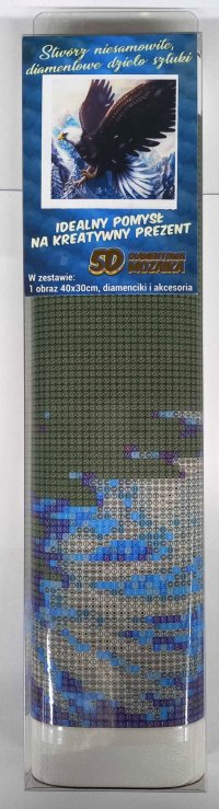 Balenie obsahuje: plátno s predtlačeným obrázkom, pero na aplikáciu kamienkov, misku na vysypanie kamienkov, vosk na nalepenie, sadu farebných kamienkov Diamantové maľovanie - postup: Horná strana plátna je potiahnutá lepidlom a prekrytá priehľadnou fóliou. Fóliu dávajte dole postupne po častiach tak, ako budete aplikovať kamienky. Pri sňatí celej fólie naraz sa môže lepiaca vrstva znečistiť a kamienky by nemuseli tak dobre držať. Plátno obsahuje znaky, ktoré sú uvedené v priloženej legende a odkazujú na príslušné vrecko s kamienkami označené číslom. Kamienky z daného vrecka vysypte do misky. Do hrotu pera naberte vosk, vďaka ktorému sa kamienky ľahko prichytia na pero. Kamienky perom nanášajte na obrázok. Po nalepení danej farby kamienky nasypte späť do vrecka a pokračujte s ďalšou farbou.