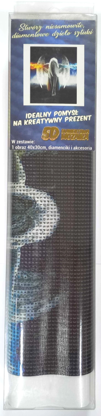 Balenie obsahuje: plátno s predtlačeným obrázkom, pero na aplikáciu kamienkov, misku na vysypanie kamienkov, vosk na nalepenie, sadu farebných kamienkov Diamantové maľovanie - postup: Horná strana plátna je potiahnutá lepidlom a prekrytá priehľadnou fóliou. Fóliu dávajte dole postupne po častiach tak, ako budete aplikovať kamienky. Pri sňatí celej fólie naraz sa môže lepiaca vrstva znečistiť a kamienky by nemuseli tak dobre držať. Plátno obsahuje znaky, ktoré sú uvedené v priloženej legende a odkazujú na príslušné vrecko s kamienkami označené číslom. Kamienky z daného vrecka vysypte do misky. Do hrotu pera naberte vosk, vďaka ktorému sa kamienky ľahko prichytia na pero. Kamienky perom nanášajte na obrázok. Po nalepení danej farby kamienky nasypte späť do vrecka a pokračujte s ďalšou farbou.