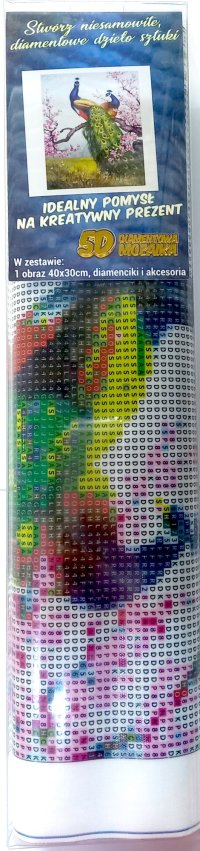 Balenie obsahuje: plátno s predtlačeným obrázkom, pero na aplikáciu kamienkov, misku na vysypanie kamienkov, vosk na nalepenie, sadu farebných kamienkov Diamantové maľovanie - postup: Horná strana plátna je potiahnutá lepidlom a prekrytá priehľadnou fóliou. Fóliu dávajte dole postupne po častiach tak, ako budete aplikovať kamienky. Pri sňatí celej fólie naraz sa môže lepiaca vrstva znečistiť a kamienky by nemuseli tak dobre držať. Plátno obsahuje znaky, ktoré sú uvedené v priloženej legende a odkazujú na príslušné vrecko s kamienkami označené číslom. Kamienky z daného vrecka vysypte do misky. Do hrotu pera naberte vosk, vďaka ktorému sa kamienky ľahko prichytia na pero. Kamienky perom nanášajte na obrázok. Po nalepení danej farby kamienky nasypte späť do vrecka a pokračujte s ďalšou farbou.