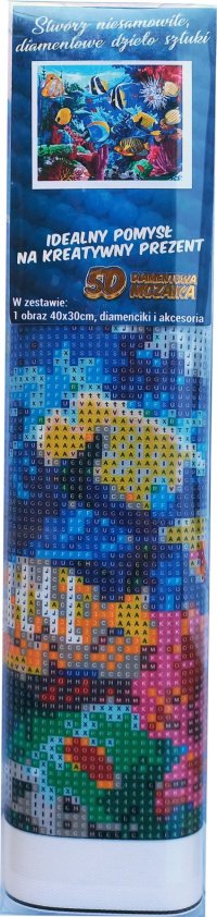 Balenie obsahuje: plátno s predtlačeným obrázkom, pero na aplikáciu kamienkov, misku na vysypanie kamienkov, vosk na nalepenie, sadu farebných kamienkov Diamantové maľovanie - postup: Horná strana plátna je potiahnutá lepidlom a prekrytá priehľadnou fóliou. Fóliu dávajte dole postupne po častiach tak, ako budete aplikovať kamienky. Pri sňatí celej fólie naraz sa môže lepiaca vrstva znečistiť a kamienky by nemuseli tak dobre držať. Plátno obsahuje znaky, ktoré sú uvedené v priloženej legende a odkazujú na príslušné vrecko s kamienkami označené číslom. Kamienky z daného vrecka vysypte do misky. Do hrotu pera naberte vosk, vďaka ktorému sa kamienky ľahko prichytia na pero. Kamienky perom nanášajte na obrázok. Po nalepení danej farby kamienky nasypte späť do vrecka a pokračujte s ďalšou farbou.