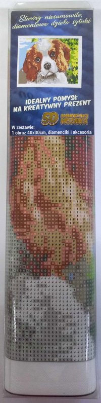 Balenie obsahuje: plátno s predtlačeným obrázkom, pero na aplikáciu kamienkov, misku na vysypanie kamienkov, vosk na nalepenie, sadu farebných kamienkov Diamantové maľovanie - postup: Horná strana plátna je potiahnutá lepidlom a prekrytá priehľadnou fóliou. Fóliu dávajte dole postupne po častiach tak, ako budete aplikovať kamienky. Pri sňatí celej fólie naraz sa môže lepiaca vrstva znečistiť a kamienky by nemuseli tak dobre držať. Plátno obsahuje znaky, ktoré sú uvedené v priloženej legende a odkazujú na príslušné vrecko s kamienkami označené číslom. Kamienky z daného vrecka vysypte do misky. Do hrotu pera naberte vosk, vďaka ktorému sa kamienky ľahko prichytia na pero. Kamienky perom nanášajte na obrázok. Po nalepení danej farby kamienky nasypte späť do vrecka a pokračujte s ďalšou farbou.