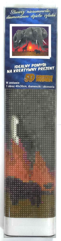 Balenie obsahuje: plátno s predtlačeným obrázkom, pero na aplikáciu kamienkov, misku na vysypanie kamienkov, vosk na nalepenie, sadu farebných kamienkov Diamantové maľovanie - postup: Horná strana plátna je potiahnutá lepidlom a prekrytá priehľadnou fóliou. Fóliu dávajte dole postupne po častiach tak, ako budete aplikovať kamienky. Pri sňatí celej fólie naraz sa môže lepiaca vrstva znečistiť a kamienky by nemuseli tak dobre držať. Plátno obsahuje znaky, ktoré sú uvedené v priloženej legende a odkazujú na príslušné vrecko s kamienkami označené číslom. Kamienky z daného vrecka vysypte do misky. Do hrotu pera naberte vosk, vďaka ktorému sa kamienky ľahko prichytia na pero. Kamienky perom nanášajte na obrázok. Po nalepení danej farby kamienky nasypte späť do vrecka a pokračujte s ďalšou farbou.