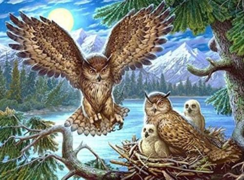 Balenie obsahuje: plátno s predtlačeným obrázkom, pero na aplikáciu kamienkov, misku na vysypanie kamienkov, vosk na nalepenie, sadu farebných kamienkov Diamantové maľovanie - postup: Horná strana plátna je potiahnutá lepidlom a prekrytá priehľadnou fóliou. Fóliu dávajte dole postupne po častiach tak, ako budete aplikovať kamienky. Pri sňatí celej fólie naraz sa môže lepiaca vrstva znečistiť a kamienky by nemuseli tak dobre držať. Plátno obsahuje znaky, ktoré sú uvedené v priloženej legende a odkazujú na príslušné vrecko s kamienkami označené číslom. Kamienky z daného vrecka vysypte do misky. Do hrotu pera naberte vosk, vďaka ktorému sa kamienky ľahko prichytia na pero. Kamienky perom nanášajte na obrázok. Po nalepení danej farby kamienky nasypte späť do vrecka a pokračujte s ďalšou farbou.