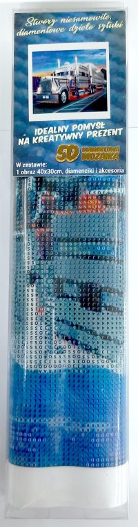 Balenie obsahuje: plátno s predtlačeným obrázkom, pero na aplikáciu kamienkov, misku na vysypanie kamienkov, vosk na nalepenie, sadu farebných kamienkov Diamantové maľovanie - postup: Horná strana plátna je potiahnutá lepidlom a prekrytá priehľadnou fóliou. Fóliu dávajte dole postupne po častiach tak, ako budete aplikovať kamienky. Pri sňatí celej fólie naraz sa môže lepiaca vrstva znečistiť a kamienky by nemuseli tak dobre držať. Plátno obsahuje znaky, ktoré sú uvedené v priloženej legende a odkazujú na príslušné vrecko s kamienkami označené číslom. Kamienky z daného vrecka vysypte do misky. Do hrotu pera naberte vosk, vďaka ktorému sa kamienky ľahko prichytia na pero. Kamienky perom nanášajte na obrázok. Po nalepení danej farby kamienky nasypte späť do vrecka a pokračujte s ďalšou farbou.