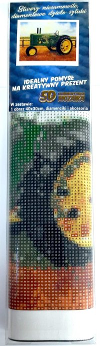 Balenie obsahuje: plátno s predtlačeným obrázkom, pero na aplikáciu kamienkov, misku na vysypanie kamienkov, vosk na nalepenie, sadu farebných kamienkov Diamantové maľovanie - postup: Horná strana plátna je potiahnutá lepidlom a prekrytá priehľadnou fóliou. Fóliu dávajte dole postupne po častiach tak, ako budete aplikovať kamienky. Pri sňatí celej fólie naraz sa môže lepiaca vrstva znečistiť a kamienky by nemuseli tak dobre držať. Plátno obsahuje znaky, ktoré sú uvedené v priloženej legende a odkazujú na príslušné vrecko s kamienkami označené číslom. Kamienky z daného vrecka vysypte do misky. Do hrotu pera naberte vosk, vďaka ktorému sa kamienky ľahko prichytia na pero. Kamienky perom nanášajte na obrázok. Po nalepení danej farby kamienky nasypte späť do vrecka a pokračujte s ďalšou farbou.