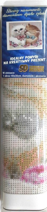 Balenie obsahuje: plátno s predtlačeným obrázkom, pero na aplikáciu kamienkov, misku na vysypanie kamienkov, vosk na nalepenie, sadu farebných kamienkov Diamantové maľovanie - postup: Horná strana plátna je potiahnutá lepidlom a prekrytá priehľadnou fóliou. Fóliu dávajte dole postupne po častiach tak, ako budete aplikovať kamienky. Pri sňatí celej fólie naraz sa môže lepiaca vrstva znečistiť a kamienky by nemuseli tak dobre držať. Plátno obsahuje znaky, ktoré sú uvedené v priloženej legende a odkazujú na príslušné vrecko s kamienkami označené číslom. Kamienky z daného vrecka vysypte do misky. Do hrotu pera naberte vosk, vďaka ktorému sa kamienky ľahko prichytia na pero. Kamienky perom nanášajte na obrázok. Po nalepení danej farby kamienky nasypte späť do vrecka a pokračujte s ďalšou farbou.
