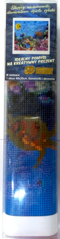 Balenie obsahuje: plátno s predtlačeným obrázkom, pero na aplikáciu kamienkov, misku na vysypanie kamienkov, vosk na nalepenie, sadu farebných kamienkov Diamantové maľovanie - postup: Horná strana plátna je potiahnutá lepidlom a prekrytá priehľadnou fóliou. Fóliu dávajte dole postupne po častiach tak, ako budete aplikovať kamienky. Pri sňatí celej fólie naraz sa môže lepiaca vrstva znečistiť a kamienky by nemuseli tak dobre držať. Plátno obsahuje znaky, ktoré sú uvedené v priloženej legende a odkazujú na príslušné vrecko s kamienkami označené číslom. Kamienky z daného vrecka vysypte do misky. Do hrotu pera naberte vosk, vďaka ktorému sa kamienky ľahko prichytia na pero. Kamienky perom nanášajte na obrázok. Po nalepení danej farby kamienky nasypte späť do vrecka a pokračujte s ďalšou farbou.