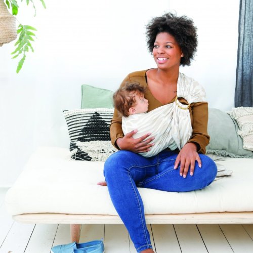 Babylonia BB-Sling je tkaná šatka s krúžkami, ktorá je určená na nosenie najmä na boku.