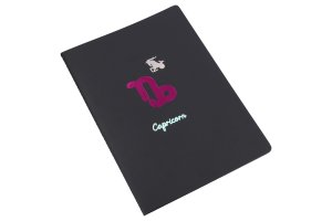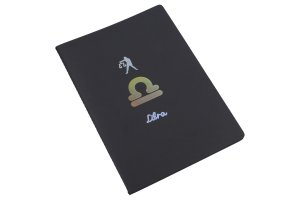 Notes 18,5x25,5 cm, vo vnútri 26 čiernych linkovaných strán.