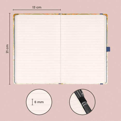 Kvalitný linajkový notes v pevných doskách s uzatváraním na gumičku, pútkom na ceruzku a vnútorným vreckom na drobnosti. Vnútri nájdete 172 bodkovaných strán na žltom papieri na zapísanie všetkých vašich nápadov. Linkovaný zápisník môžete použiť ako denník, písať do neho hlboké myšlienky alebo pracovné poznámky.