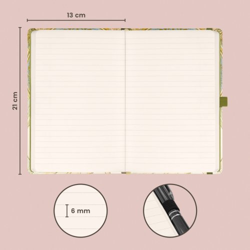 Kvalitný linajkový notes v pevných doskách s uzatváraním na gumičku, pútkom na ceruzku a vnútorným vreckom na drobnosti. Vnútri nájdete 172 bodkovaných strán na žltom papieri na zapísanie všetkých vašich nápadov. Linkovaný zápisník môžete použiť ako denník, písať do neho hlboké myšlienky alebo pracovné poznámky.
