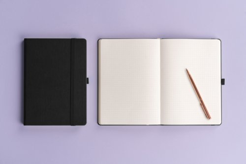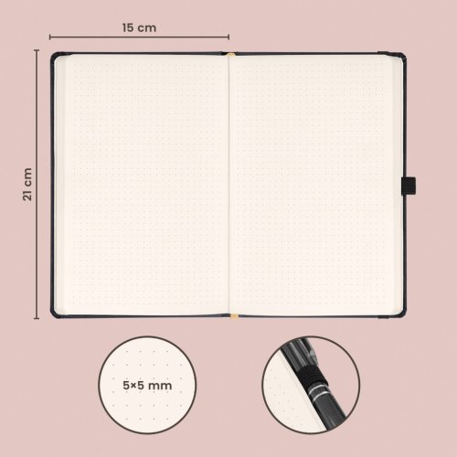Bodkovaný notes Aprint v čiernom prevedení. Klasika aj elegancia, najžiadanejší povrch, na ktorý možno ľahko raziť firemné logá s jemnou štruktúrou.