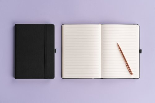 Linkovaný notes Aprint v čiernom prevedení. Klasika aj elegancia, najžiadanejší povrch, na ktorý možno ľahko raziť firemné logá s jemnou štruktúrou.