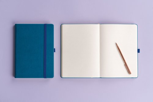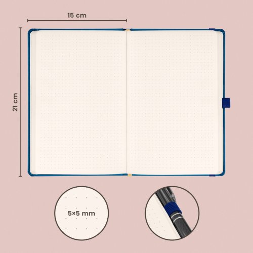 Bodkovaný notes Aprint v modrom prevedení. Klasika aj elegancia, najžiadanejší povrch, na ktorý možno ľahko raziť firemné logá s jemnou štruktúrou.