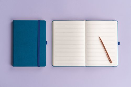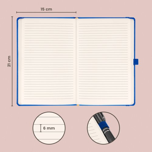 Linkovaný notes Aprint v modrom prevedení. Klasika aj elegancia, najžiadanejší povrch, na ktorý možno ľahko raziť firemné logá s jemnou štruktúrou.