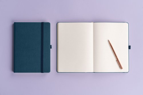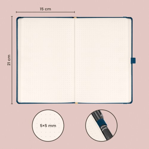 Bodkovaný notes Aprint Neo v modrom prevedení. Klasika aj elegancia, najžiadanejší povrch, na ktorý možno ľahko raziť firemné logá s jemnou štruktúrou.