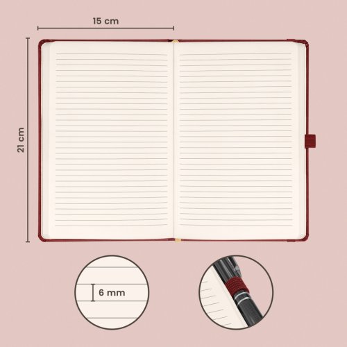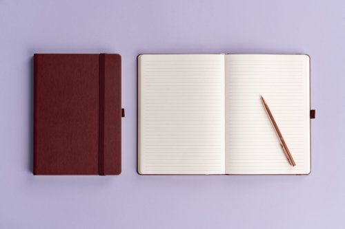 Linkovaný notes Aprint Neo vo vínovom prevedení. Klasika aj elegancia, najžiadanejší povrch, na ktorý možno ľahko raziť firemné logá s jemnou štruktúrou.