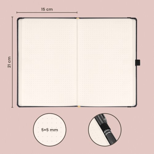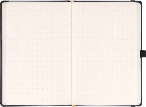 Bodkovaný notes Balacron v čiernom prevedení. Povrch diára si získal obľubu vďaka kvalitnému vrchnému materiálu, ktorý je extrémne odolný voči vonkajšiemu poškodeniu.