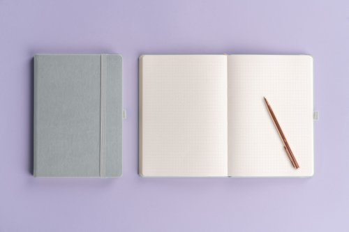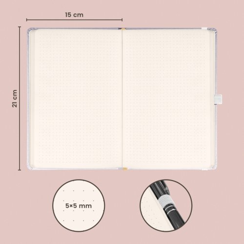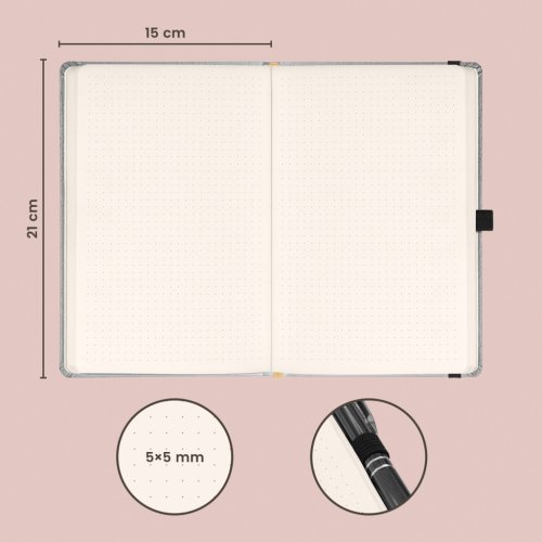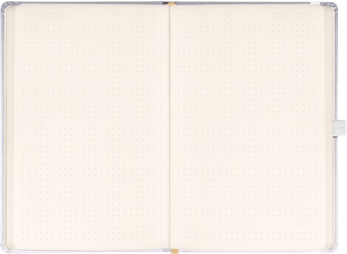 Bodkovaný notes Balacron v striebornom prevedení. Povrch diára si získal obľubu vďaka kvalitnému vrchnému materiálu, ktorý je extrémne odolný voči vonkajšiemu poškodeniu.