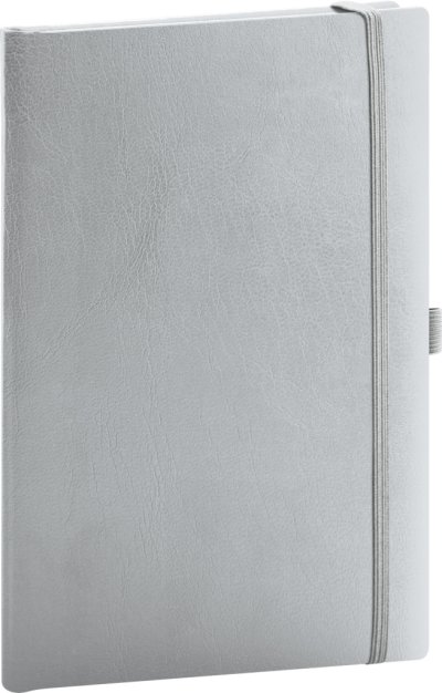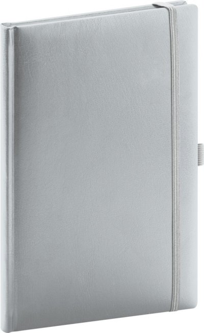 Linkovaný notes Balacron v striebornom prevedení. Povrch diára si získal obľubu vďaka kvalitnému vrchnému materiálu, ktorý je extrémne odolný voči vonkajšiemu poškodeniu.