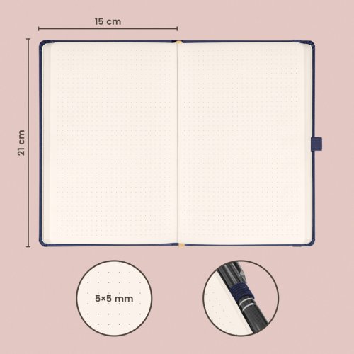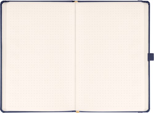 Bodkovaný notes Balacron v tmavo modrom prevedení. Povrch diára si získal obľubu vďaka kvalitnému vrchnému materiálu, ktorý je extrémne odolný voči vonkajšiemu poškodeniu.