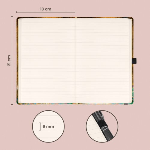 Kvalitný linajkový notes v pevných doskách s uzatváraním na gumičku, pútkom na ceruzku a vnútorným vreckom na drobnosti. Vnútri nájdete 172 bodkovaných strán na žltom papieri na zapísanie všetkých vašich nápadov. Linkovaný zápisník môžete použiť ako denník, písať do neho hlboké myšlienky alebo pracovné poznámky.