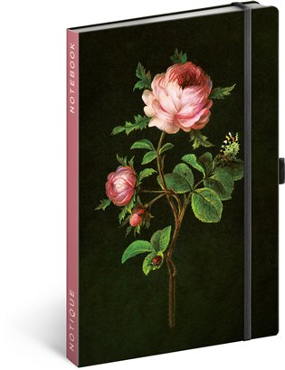 Notes v pevných doskách z kolekcie Kataríny Winterovej s ilustráciami ruží, s uzatváraním na gumičku, vreckom na drobnosti a pútkom na ceruzku. Vnútri nájdete 172 linajkových strán na žltom papieri na zapísanie všetkých vašich nápadov.