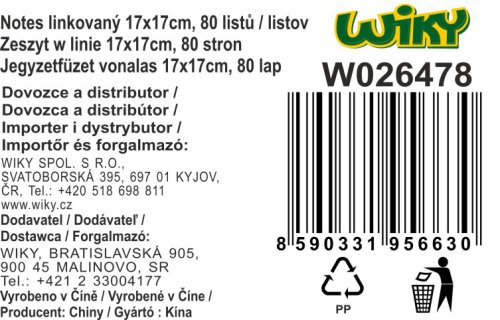 Notes o veľkosti 17x17 cm MIX. 80 linkovaných strán. Rôzne motívy a farby.