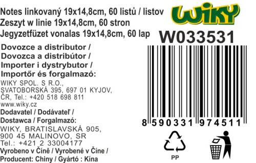 Notes špirála linajkový 19x14, 8 cm, 60 strán Smajlík 4 farebné prevedenia.