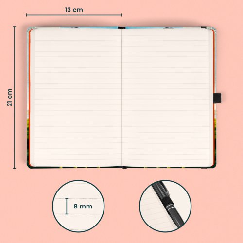 Notes v pevných doskách z kolekcie Kataríny Winterovej s uzatváraním na gumičku, vreckom na drobnosti a pútkom na ceruzku. Vnútri nájdete 172 linkovaných strán na krémovom papieri na zapísanie všetkých vašich nápadov.