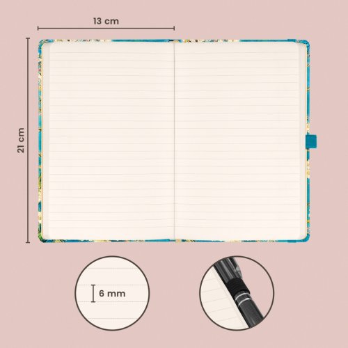 Kvalitný linajkový notes v pevných doskách s uzatváraním na gumičku, pútkom na ceruzku a vnútorným vreckom na drobnosti. Vnútri nájdete 172 bodkovaných strán na žltom papieri na zapísanie všetkých vašich nápadov. Linkovaný zápisník môžete použiť ako denník, písať do neho hlboké myšlienky alebo pracovné poznámky.