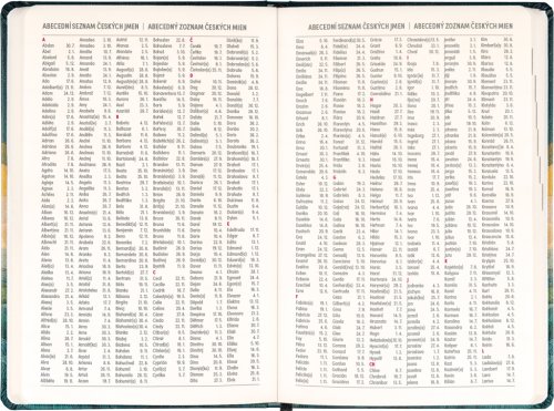 Osemnásťmesačný diár obsahuje prehľad na rok 2026 a 2027, zoznam českých a slovenských mien a česko-slovenské týždenné stĺpcové kalendárium s menami a sviatkami.