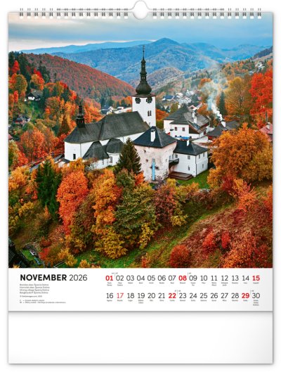 Prírodné a kultúrne dedičstvo Slovenska na stránkach kalendára v obľúbenom výškovom formáte. Fotografie dopĺňa slovenské kalendárium so zvýraznenými sviatkami a nedeľami.