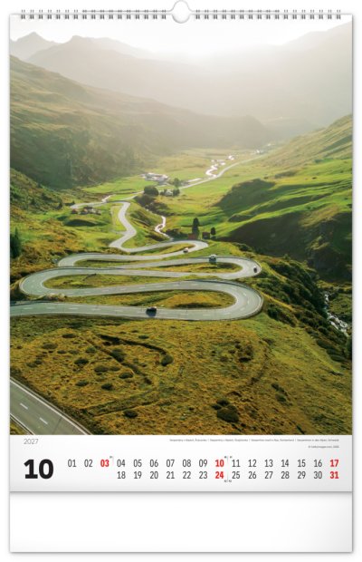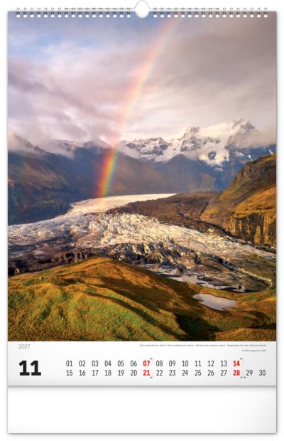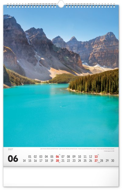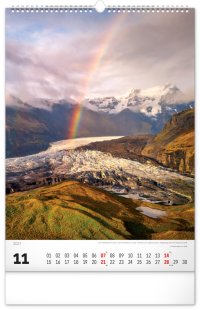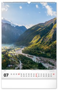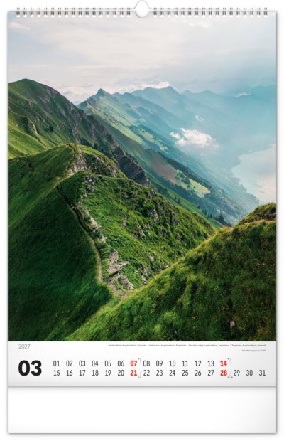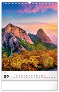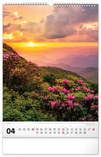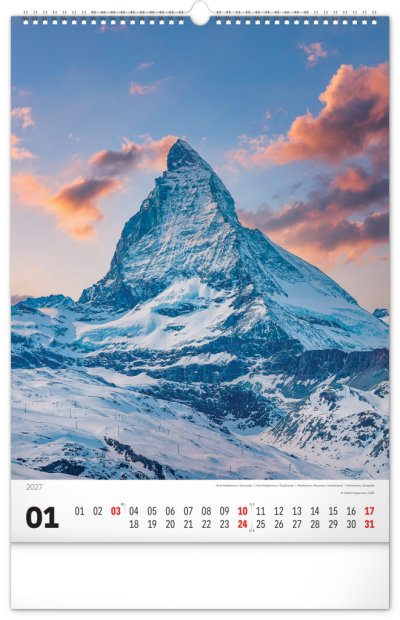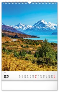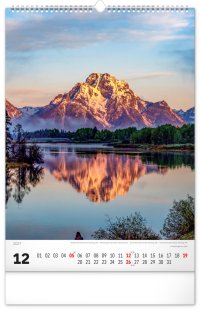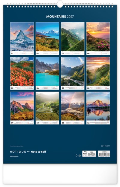 Nástenný kalendár v atraktívnom výškovom formáte obsahuje fotografie majestátnych hôr z Nového Zélandu, Islandu, Švajčiarska alebo Kanady. Fotografie sú doplnené jednoduchým kalendáriom.