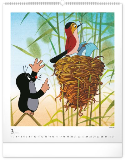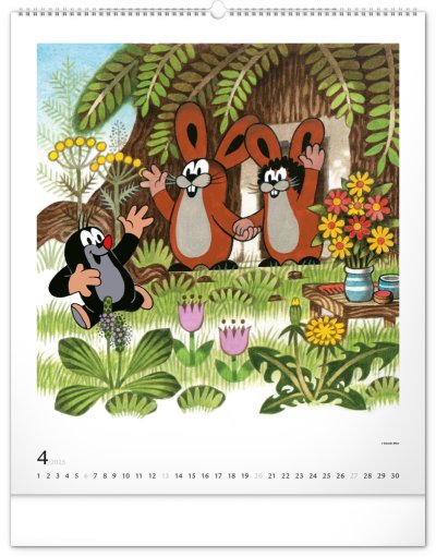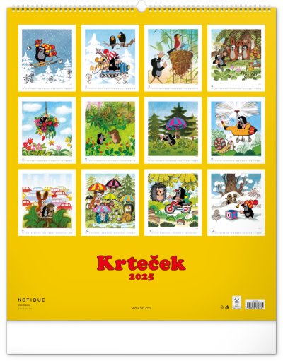 Príbehy o Krtkovi a jeho dobrodružstvách v ilustráciách Zdeňka Milera. Ak ste tiež vyrástli na jeho príbehoch, budete milo nadšení. Veľkoformátový kalendár je vytlačený na kvalitnom papieri s vysokou gramážou, ilustrácie dopĺňa univerzálne kalendárium so zvýraznenými nedeľami na bielom pozadí.