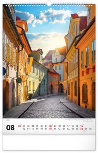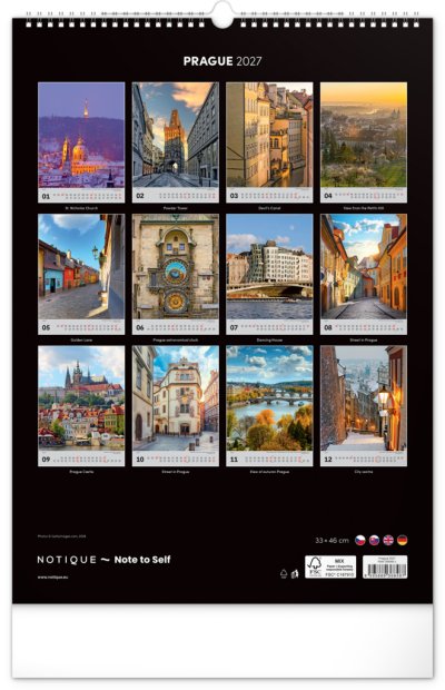 Kalendár, ktorý vás prevedie známymi pamiatkami českej metropoly, ktorá sa právom radí medzi najkrajšie mestá Európy. Prostredníctvom dvanástich fotografií vo výškovom formáte navštívite ako známe pamiatky, tak neobvyklé zákutia. Zábery na Karlov most, Pražský hrad alebo Václavské námestie dopĺňajú popisky v štyroch jazykoch a jednoduché biele kalendárium. Kalendár poteší všetkých milovníkov histórie a architektúry.
