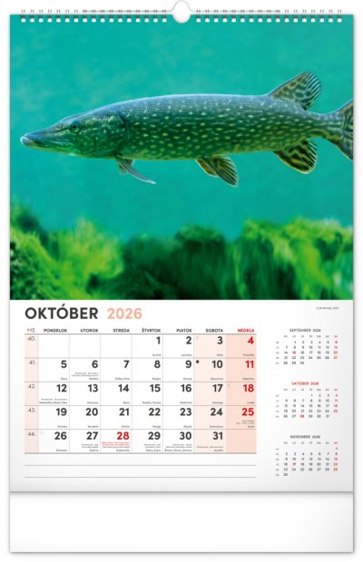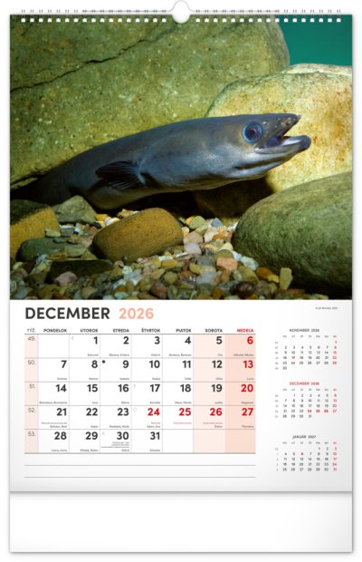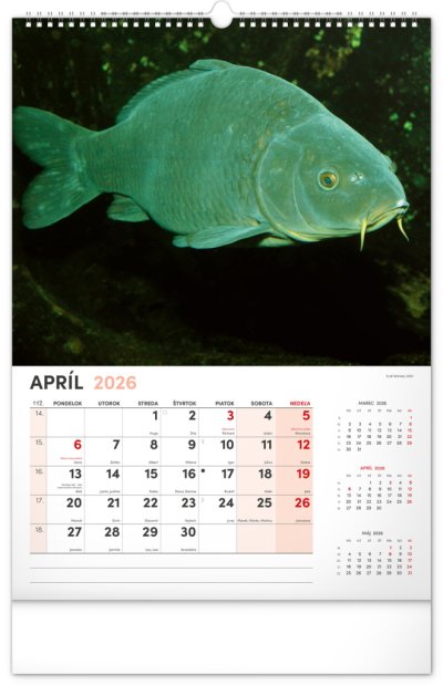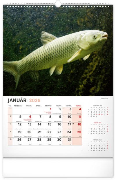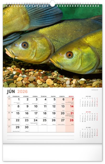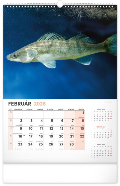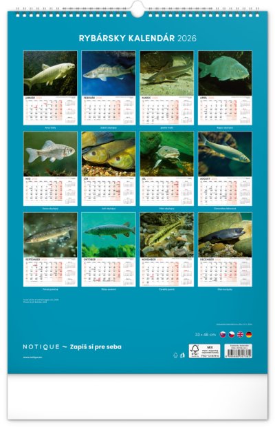 Dvanásť fotografií z vodného sveta v tomto nástennom kalendári zachytávajú tie najskvostnejšie úlovky. Rozšírené kalendárium obsahuje slovenské mená, sviatky a pamätné dni, trojmesačný prehľad na každej strane a priestor pre poznámky. Nadchne všetkých vášnivých rybárov a milovníkov vodných plôch.