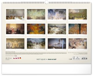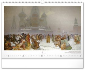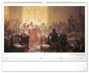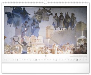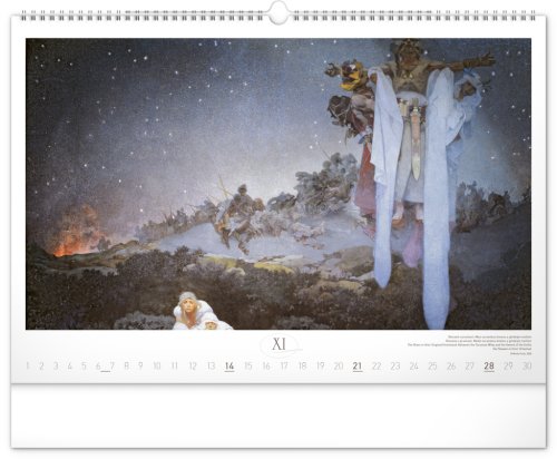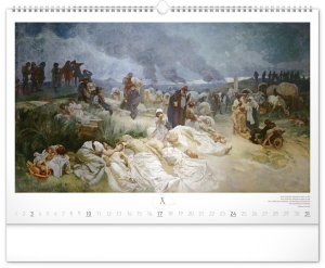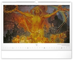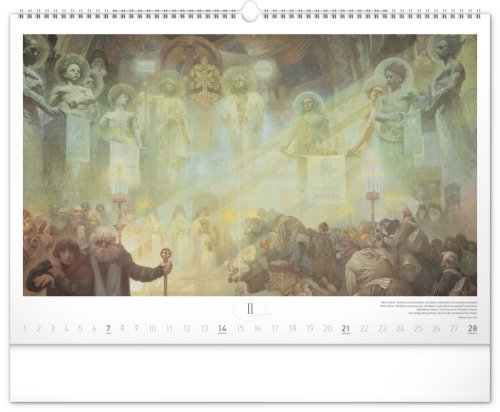 Nástenný kalendár s reprodukciami známych obrazov Slovanskej epopeje od českého secesného maliara Alfonsa Muchu. Reprodukcia dopĺňa vkusné univerzálne kalendárium s vyznačenými nedeľami a popiskami obrazov v štyroch jazykoch (CZ, SK, EN, DE).