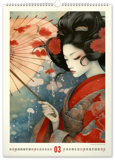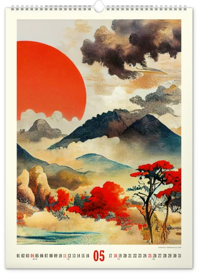 Veľkoformátový kalendár so starostlivo vybranými klasickými plagátmi s motívmi japonskej kultúry. Prepracované detaily a živé farby je možné obdivovať na veľkom formáte kalendára s vysokou gramážou papiera.