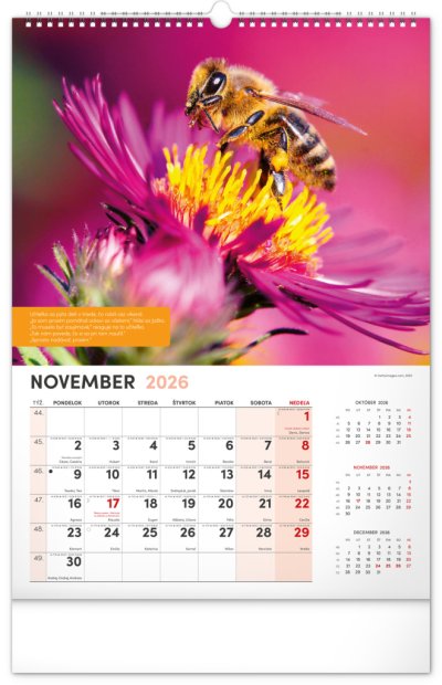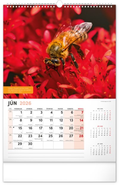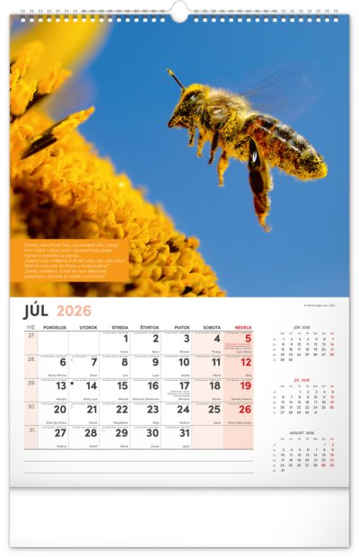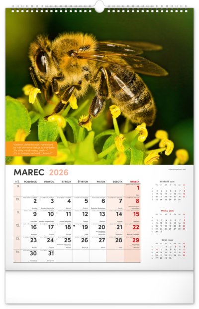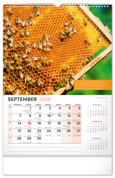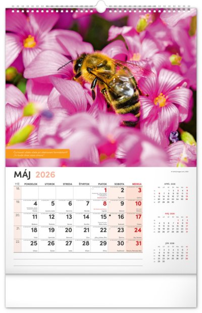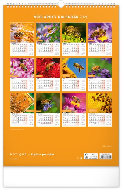 Nástenný kalendár pre všetkých začínajúcich aj pokročilých včelárov. Fotografie každý mesiac dopĺňajú pranostiky, včelárska múdrosť a čo by mal v daný mesiac včelár urobiť. Kalendár obsahuje slovenské kalendárium s menami a sviatkami, tiež pamätné dni a východy a západy slnka. S naším kalendárom sa budete hneď pustiť do včelárenia!