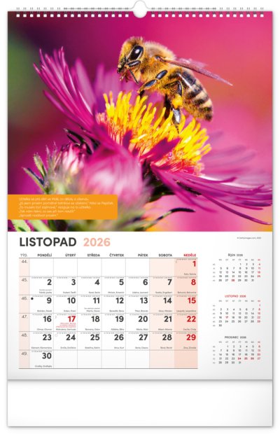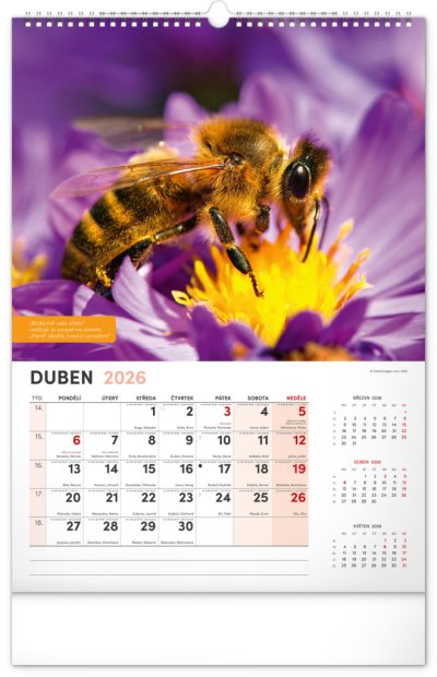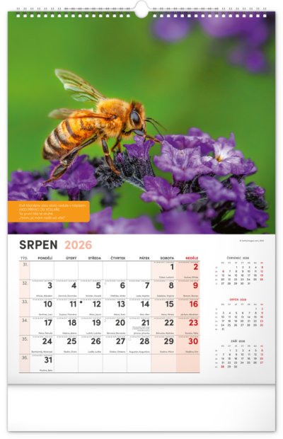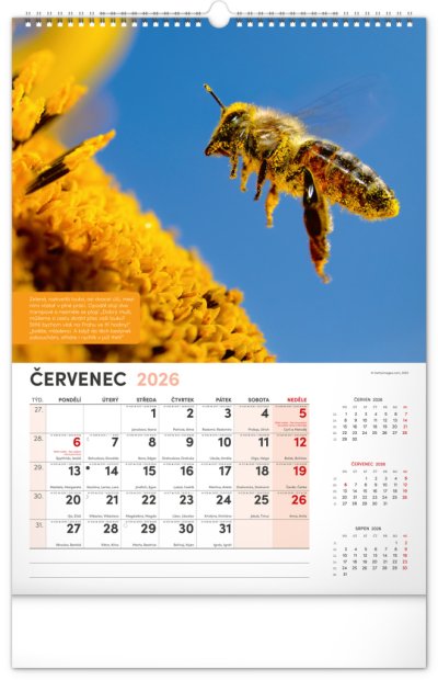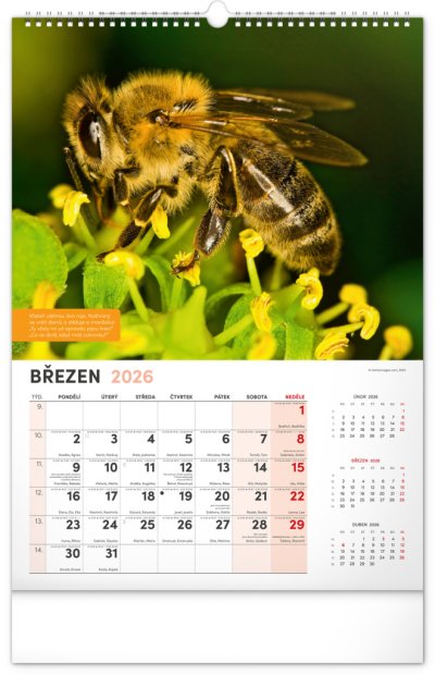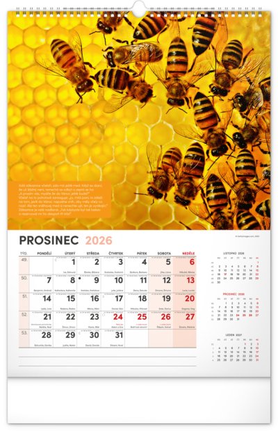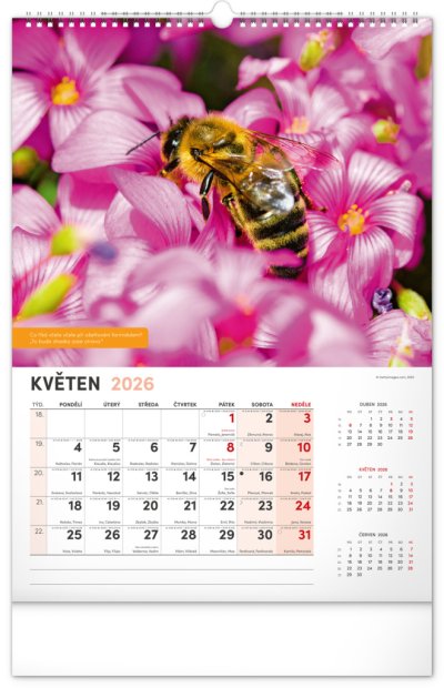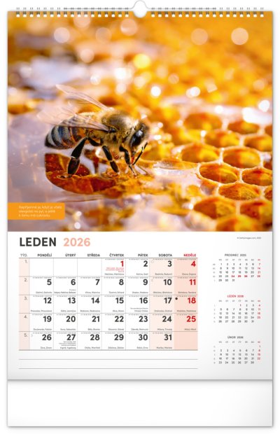 Nástenný kalendár pre všetkých začínajúcich aj pokročilých včelárov. Fotografie každý mesiac dopĺňajú pranostiky, včelárska múdrosť a čo by mal v daný mesiac včelár urobiť. Kalendár obsahuje slovenské kalendárium s menami a sviatkami, tiež pamätné dni a východy a západy slnka. S naším kalendárom sa budete hneď pustiť do včelárenia!